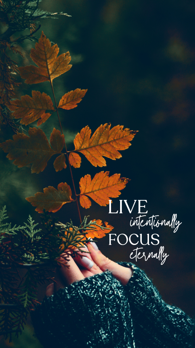 We love autumn! To celebrate this special season, we have new phone wallpapers to help us remember to Live Intentionally and Focus Eternally and to always Choose Hope. Fall leaves, evergreen trees, snuggly sweaters and sun-kissed colors abound… we can just feel the warmth and joy of the season! We hope these images spark hope and encouragement for you as well.